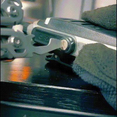 Για να κλείσετε το ψαλίδι, πατήστε το κουμπί ασφάλισης και στη συνέχεια πιέστε το λείο σώμα του ψαλιδιού για να το διπλώσετε ξανά στη λαβή.